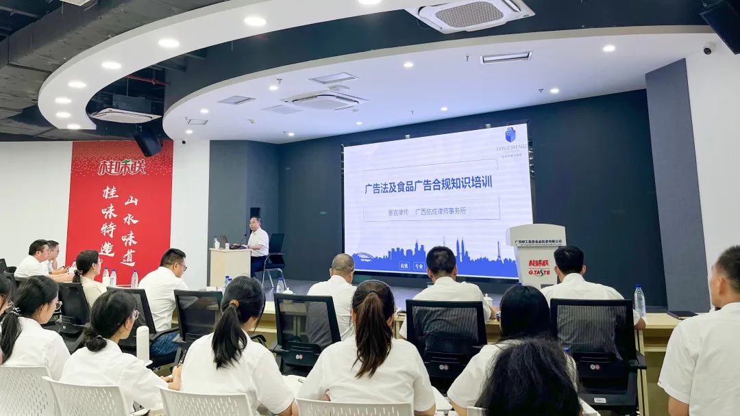 本次培訓(xùn)由廣西佑成律師事務(wù)所晏宜律師授課,圍繞《廣告法》的基本內(nèi)容、《反不正當(dāng)競(jìng)爭(zhēng)法》的虛假宣傳規(guī)定和食品廣告合規(guī)規(guī)范,以及廣告宣傳熱點(diǎn)事件展開(kāi),結(jié)合公司的廣告工作實(shí)際,將廣告宣傳法律知識(shí)以通俗易懂的形式傳授給職工。培訓(xùn)中,晏宜律師和與會(huì)職工們積極互動(dòng),并就公司廣告宣傳工作中潛在的風(fēng)險(xiǎn)點(diǎn)進(jìn)行了答疑解惑。
