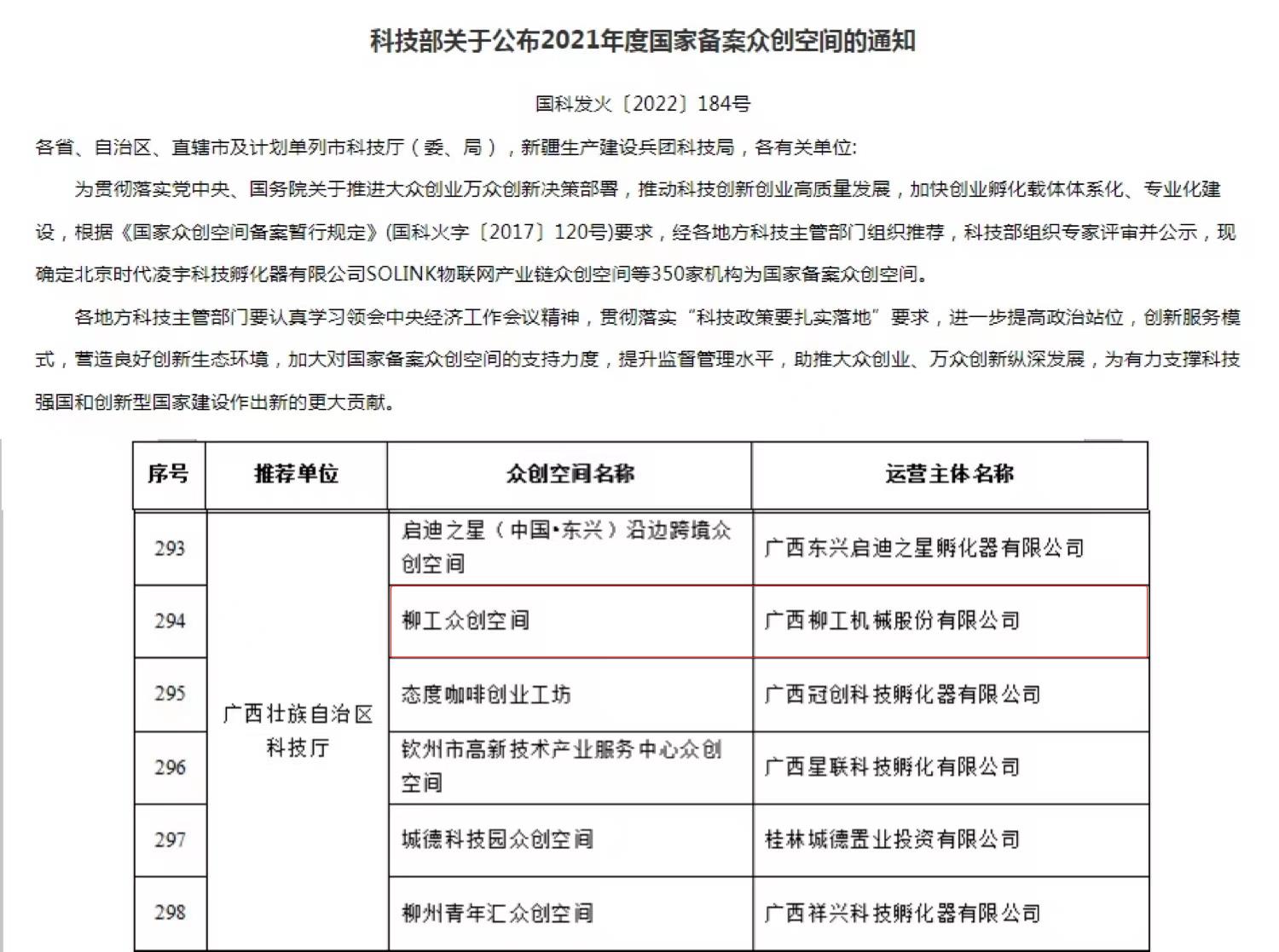 近日,國家科學(xué)技術(shù)部火炬中心發(fā)布了《關(guān)于公布2021年度國家備案眾創(chuàng)空間的通知》,柳工眾創(chuàng)空間獲評國家級備案眾創(chuàng)空間。